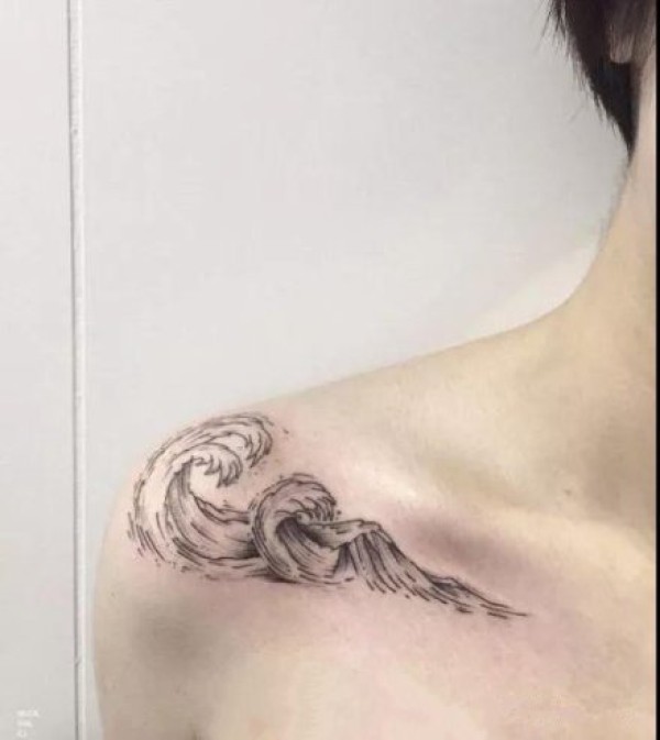 锁骨简约纹身_9张锁骨上的小清新简约黑灰纹身作品图案