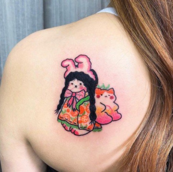 可爱卡通小猫咪纹身--猫露娜与亚提密斯的卡通纹身图案