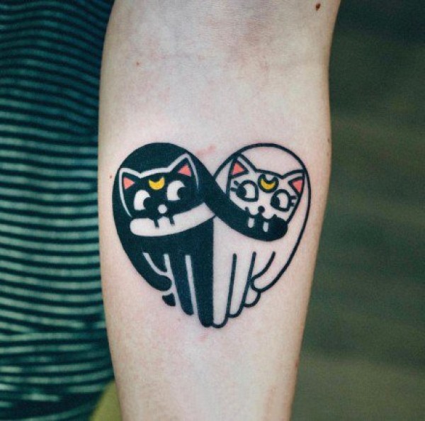 心形猫咪纹身--一组oldschool风格的猫咪主题心形纹身图案