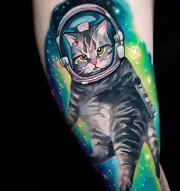 宇航员纹身图案--9张彩色宇航员星空星球宇宙纹身作品