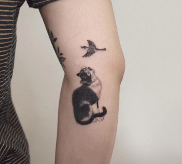 小清新猫纹身:狠可爱的一组小清新猫纹身图案