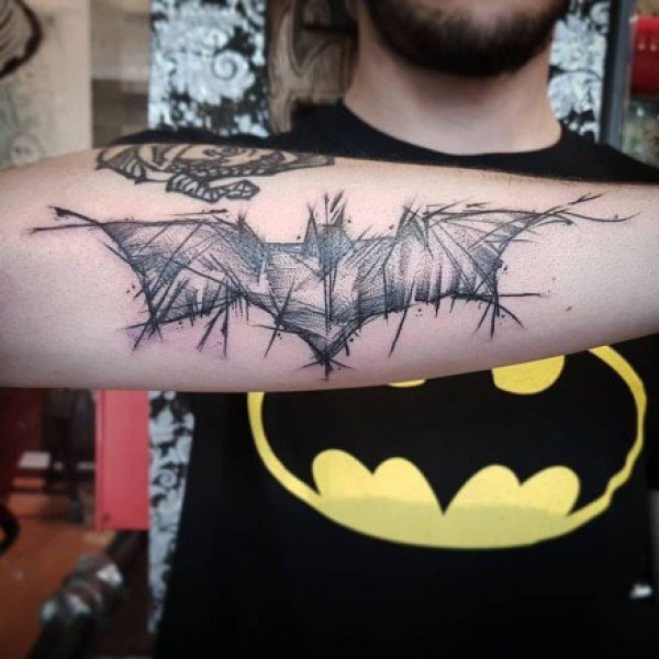 蝙蝠侠纹身 男生手臂上英雄人物蝙蝠侠纹身图片