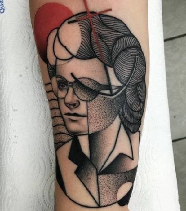超现实风格的黑灰色漂亮的时尚女士纹身图案来自埃里克