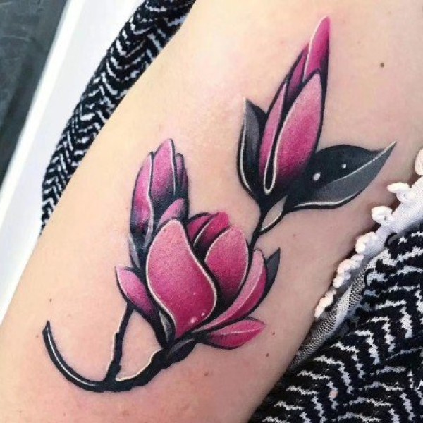 纹在手臂胳膊上的黑灰素花花卉纹身图案欣赏