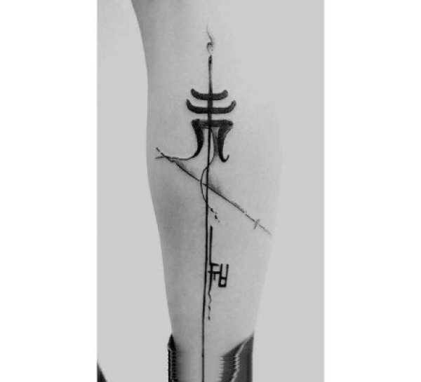 水墨书法风格的纹身-每个字背后都蕴含着深刻的含义