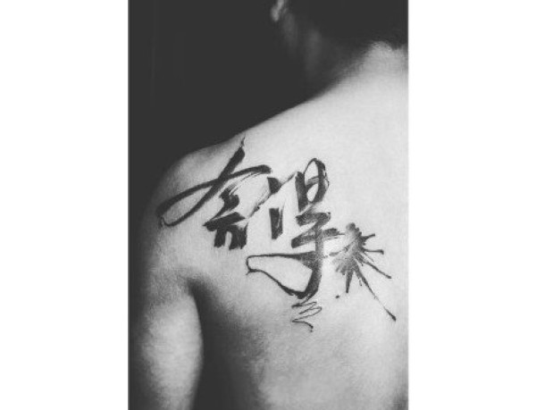水墨书法风格的纹身-每个字背后都蕴含着深刻的含义