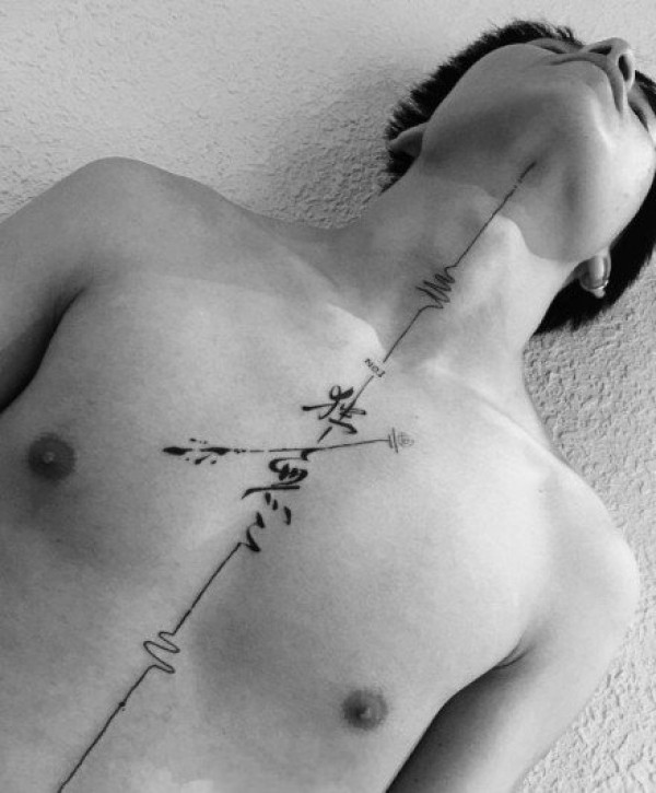 水墨书法风格的纹身-每个字背后都蕴含着深刻的含义