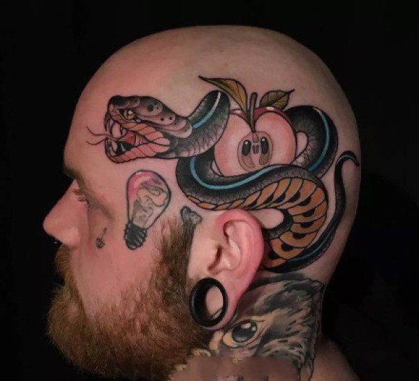 霸气男头部时尚纹身图片_头部纹身图案大全_纹身图吧
