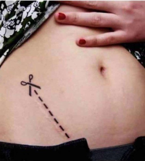 9张女性腹部剖腹产遮盖疤痕纹身作品