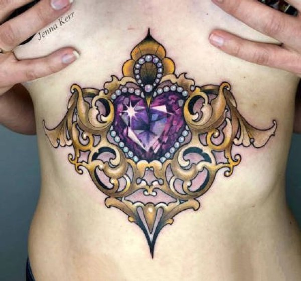胸部昂贵的钻石工艺品纹身