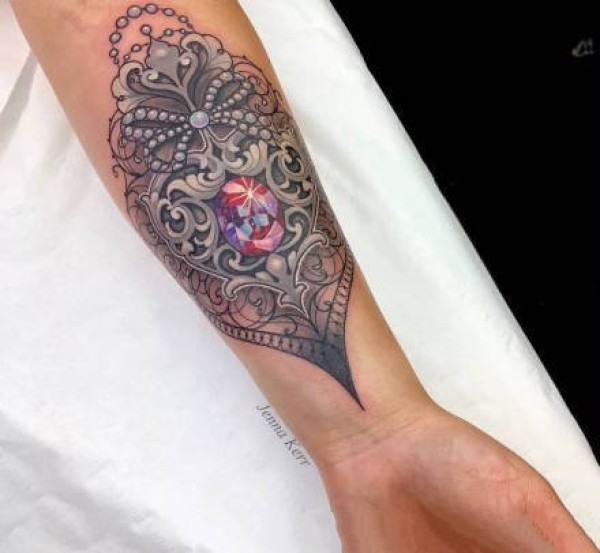 18组炫彩色的宝石钻石纹身图案
