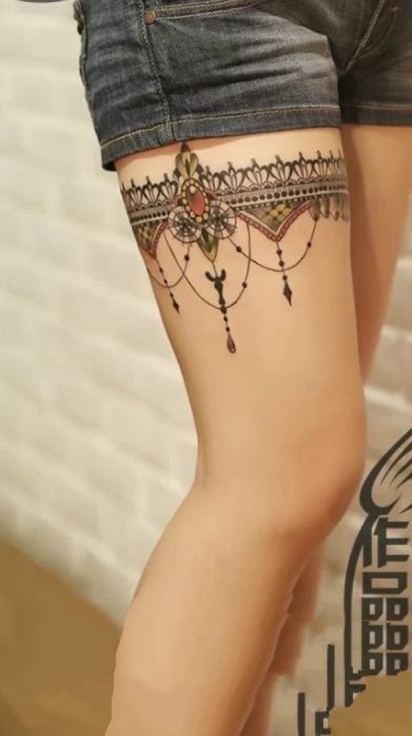 女生身上很性感的宝石蕾丝链纹身图案欣赏