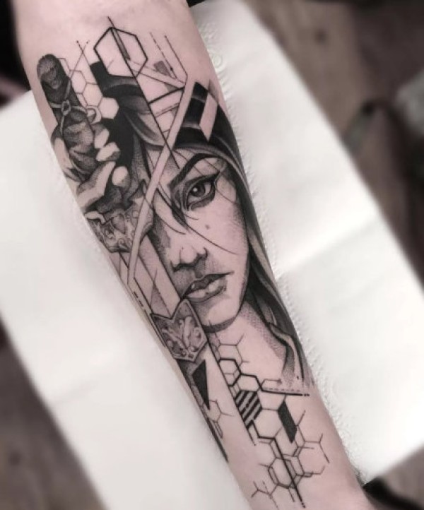 心脏纹身图案 女生手臂上黑灰纹身心脏纹身图案