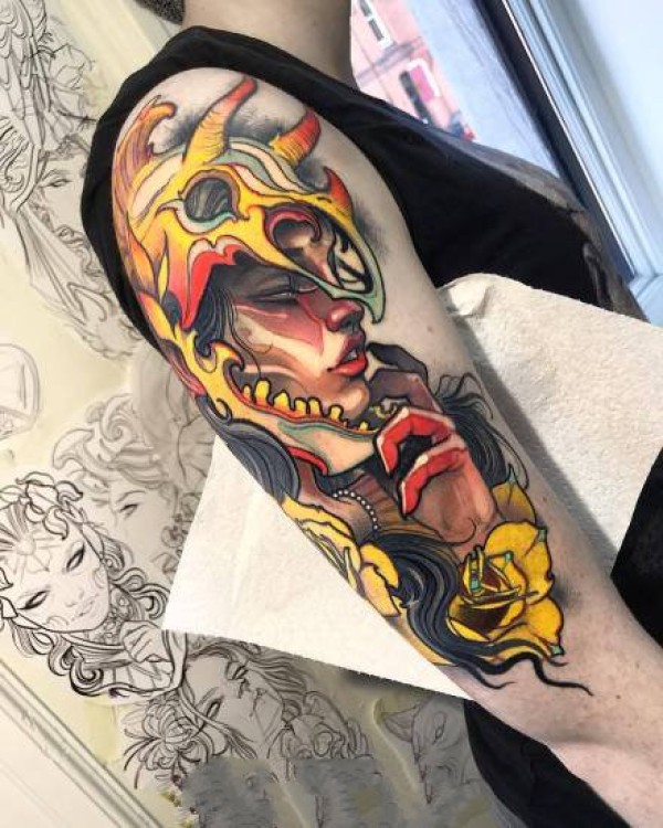 能面万媚纹身手稿_52张日式能剧面具纹身手稿图案素材欣赏