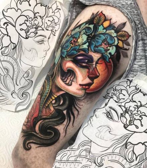 能面万媚纹身手稿_52张日式能剧面具纹身手稿图案素材欣赏