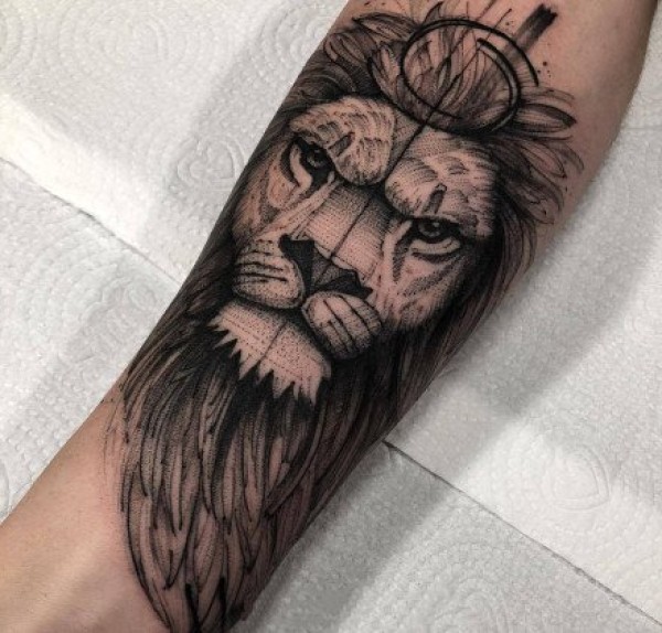 一组好看的狮子纹身设计图案作品9张