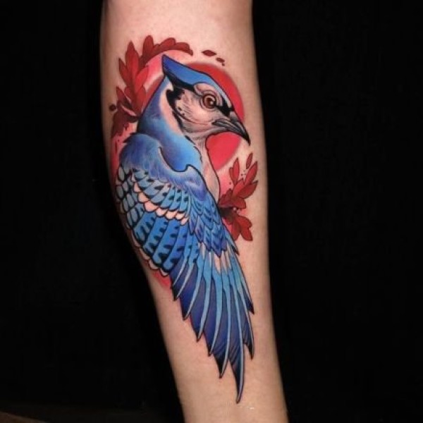 彩色newschool风格的喜鹊等花鸟纹身图案
