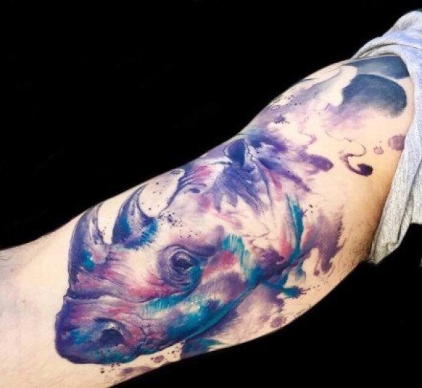手臂逼真的彩色卡通小犀牛头纹身图案