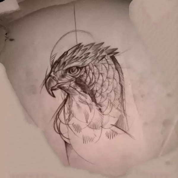 雄鹰刺青--9张黑灰线条的老鹰纹身作品图片欣赏