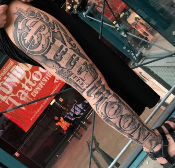 9张胳膊上很有个性的黑色英文花体字纹身图案