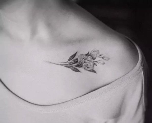 锁骨简约纹身_9张锁骨上的小清新简约黑灰纹身作品图案