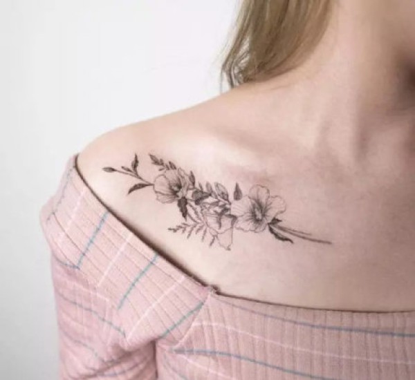锁骨刺青:纹在女生锁骨处的小清新纹身图案9张