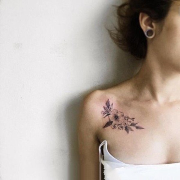 锁骨刺青:纹在女生锁骨处的小清新纹身图案9张