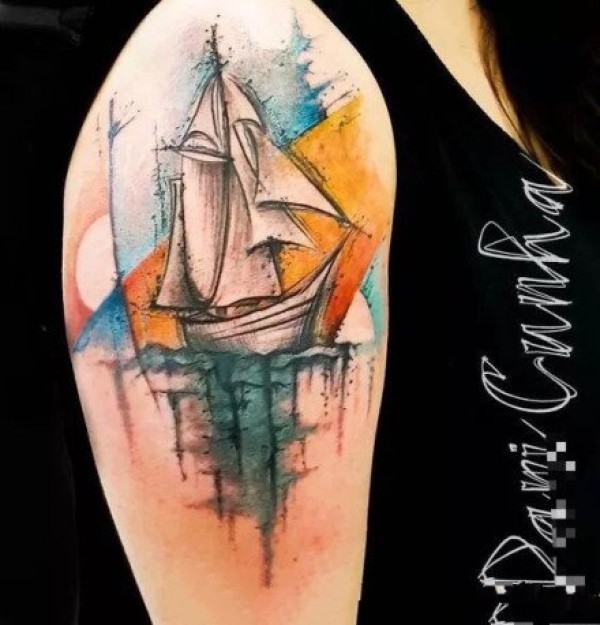 漂亮好看的帆船纹身手稿图案欣赏图片