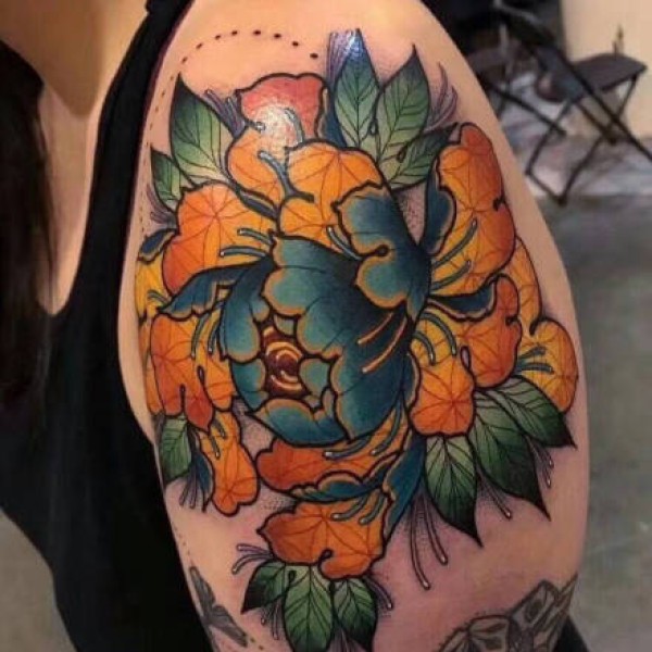 纹身小牡丹 黑色调却不失华贵的牡丹纹身图案