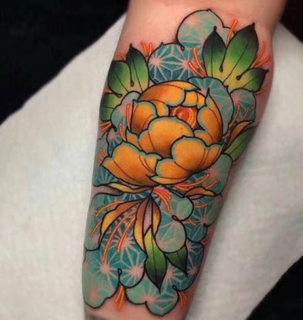 纹身小牡丹 黑色调却不失华贵的牡丹纹身图案