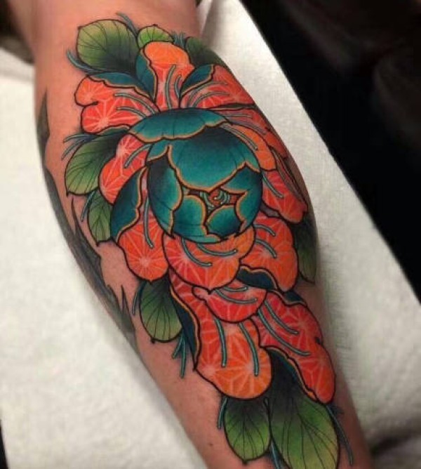 纹身小牡丹 黑色调却不失华贵的牡丹纹身图案