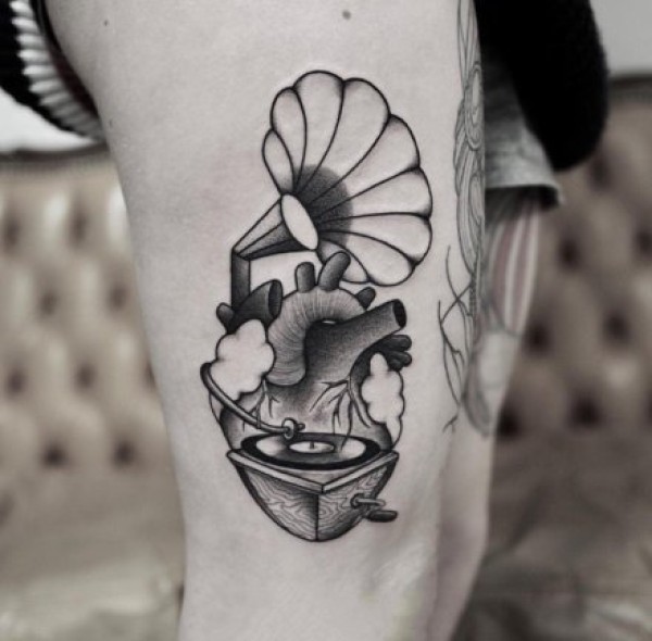 心脏纹身图案 女生手臂上黑灰纹身心脏纹身图案