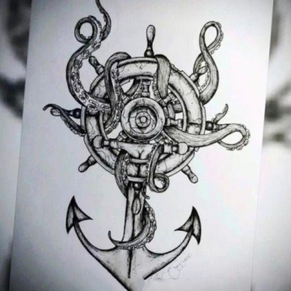 船锚纹身_9张男生比较喜欢的小清新船锚纹身图片作品