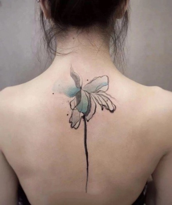 女生后背部脊椎处唯美的小清新纹身图
