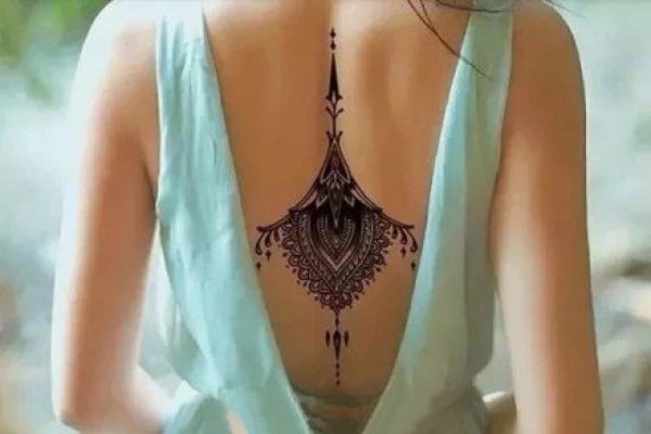 适合女生后背脊椎骨上的漂亮的脊柱纹身