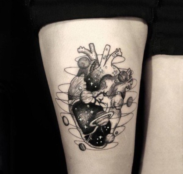 星球主题纹身--9张星球主题的黑灰色星球纹身作品图片欣赏