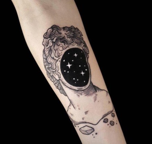 黑灰星球纹身图案_10张黑灰色的星空宇宙星球纹身图片图案
