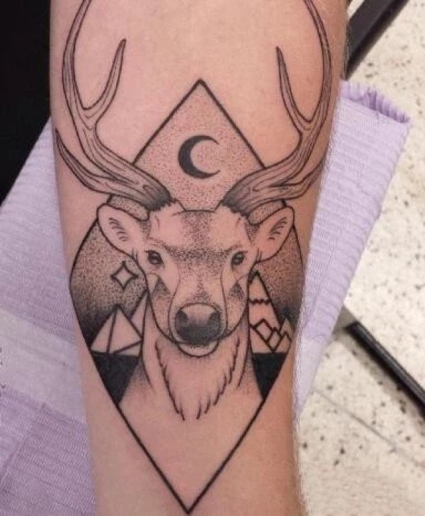 9张和鹿角鹿头相关的纹身图案作品欣赏