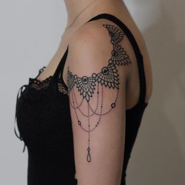 女生肩花纹身_15张女性双肩对称的肩花纹身图案作品图片