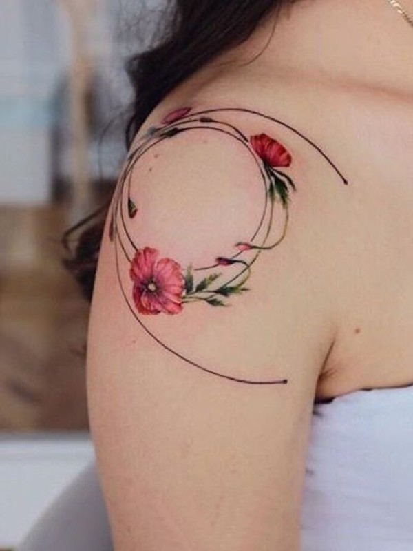女生肩花纹身_15张女性双肩对称的肩花纹身图案作品图片