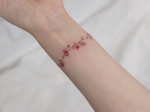 环绕手腕的小清新花环手环纹身