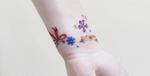 环绕手腕的小清新花环手环纹身