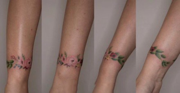 环绕手腕的小清新花环手环纹身