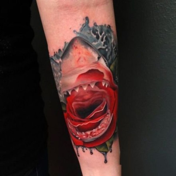 娇艳玫瑰手臂纹身_玫瑰花纹身图案大全_纹身图吧