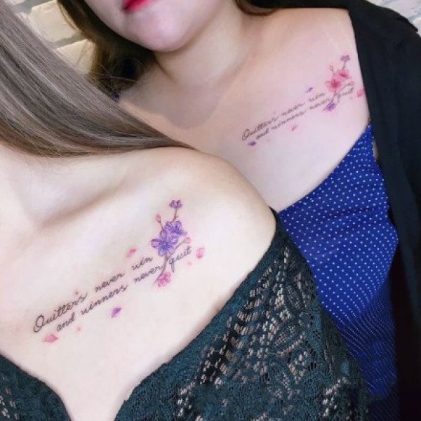 蓝色大蝴蝶和紫色小蝴蝶纹身