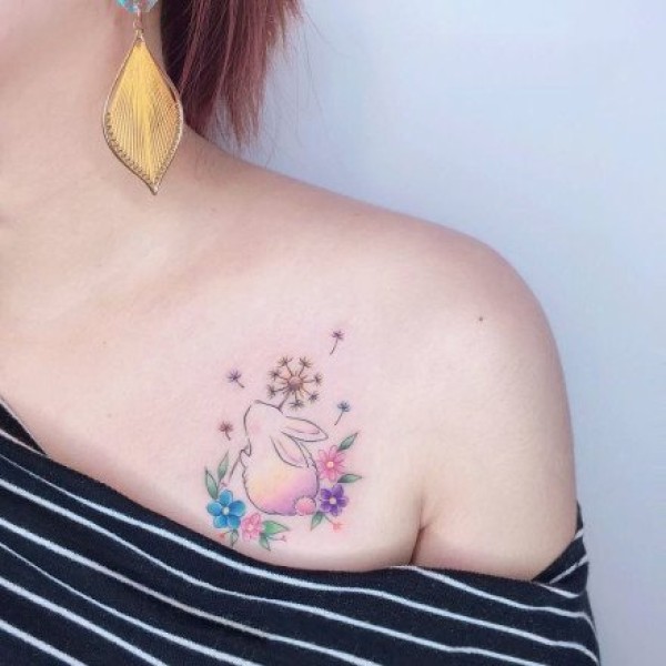 蓝色大蝴蝶和紫色小蝴蝶纹身