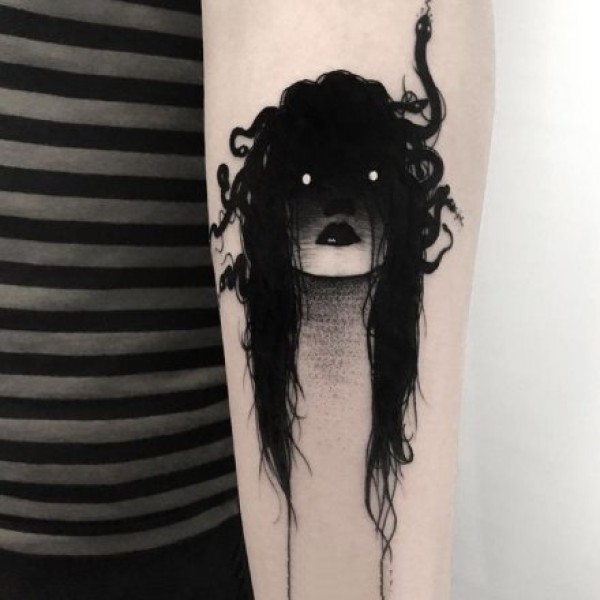 暗黑系诡异风格的黑色纹身图案18张