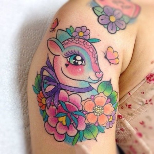 彩色newschool-女生比较青睐的newschool彩色纹身图片