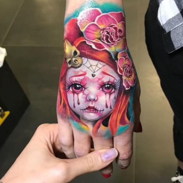 眼睛流血眼神幽怨的鬼娃娃纹身
