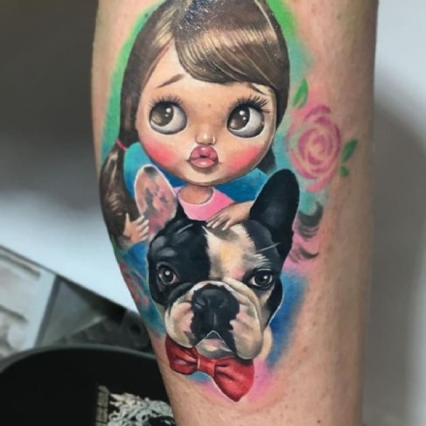 眼睛流血眼神幽怨的鬼娃娃纹身